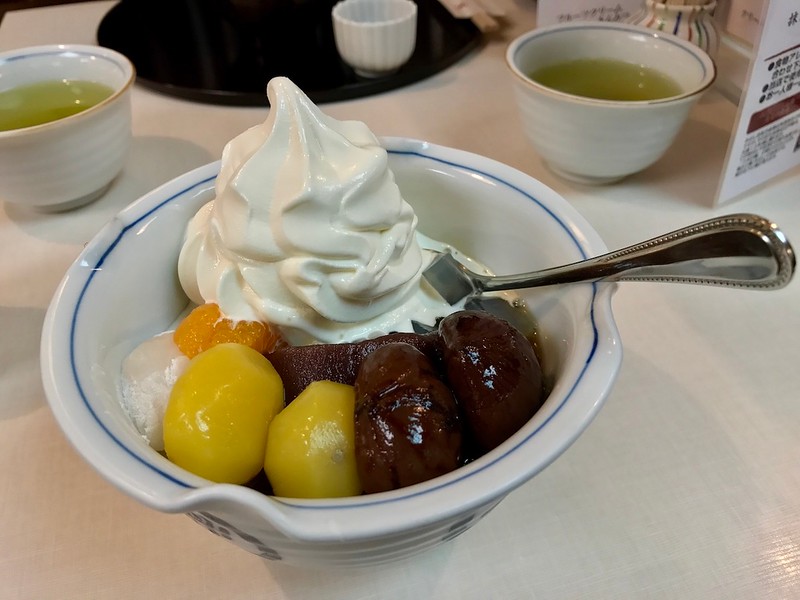 Chestnut anmitsu with soft serve ice cream - a seasonal special. - image © Florentyna Leow