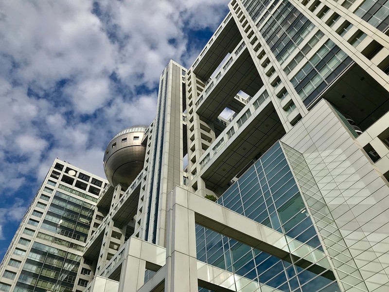 The Fuji Television headquarters is probably best known as that strange, futuristic building with the huge orb you spotted from a distance while riding the monorail through Odaiba.